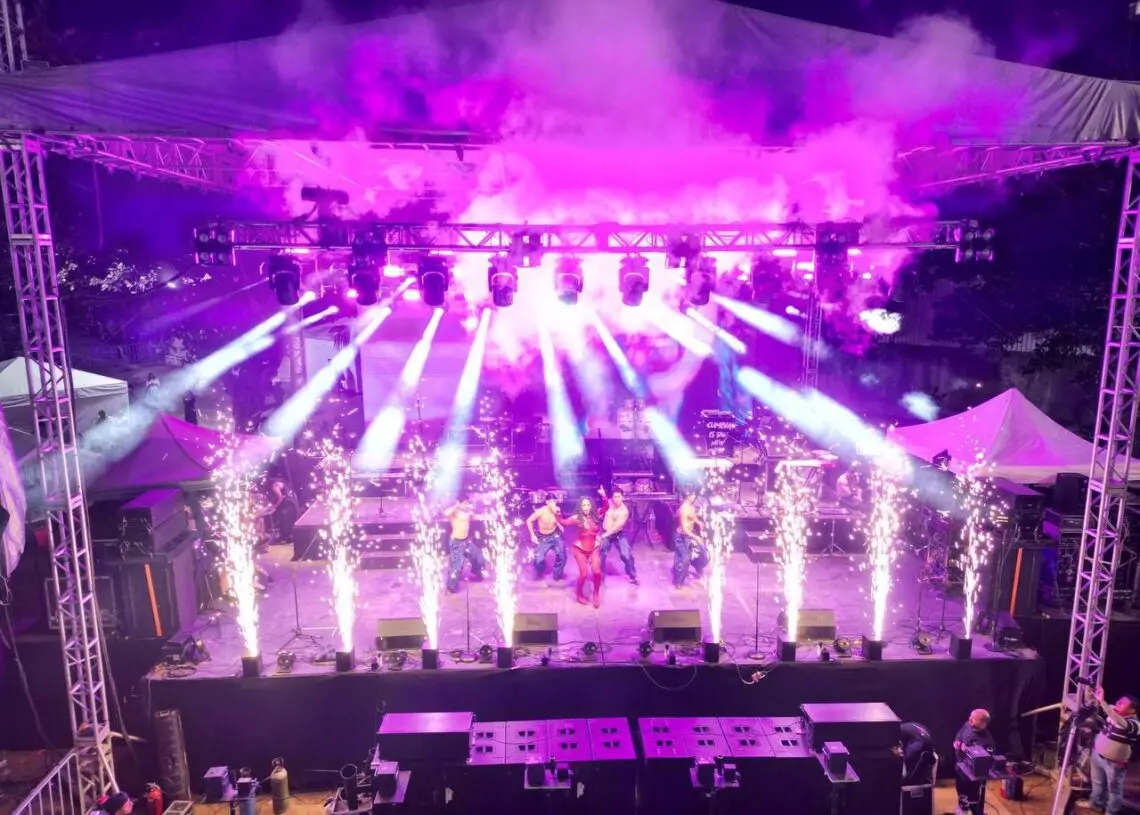 Tras las coronaciones, el escenario se llenó de ritmo. El estudio local de danza, FSM Somos Company, abrió las presentaciones. Acto seguido, las comparsas de los distintos reyes (infantiles, juvenil, de la diversidad y soberanos oficiales) ofrecieron exhibiciones con ritmos afroantillanos como: